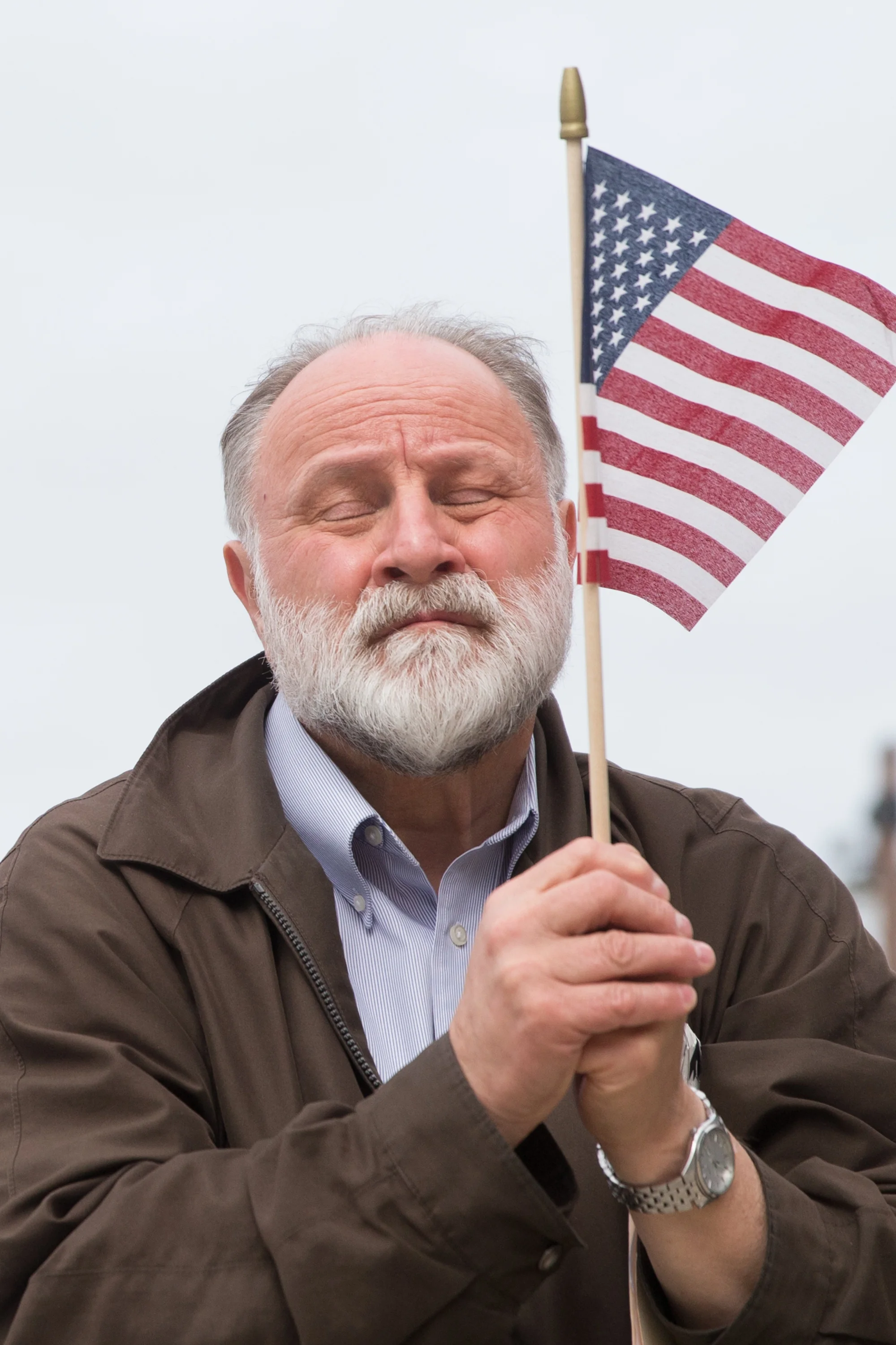 Dr. Bill Townsend of Milwaukee closes his eyes during a moment of prayer during the Voces de la Frontera press conference outside of the Department of Homeland Security and CIS offices in downtown Milwaukee. Voces de the Frontera held a press conference to respond to Trump’s announcement concerning the escalation of ICE raids in the coming weeks, summer of 2019. Protesters have been gathering every Friday to peacefully march in front of the offices to protest the treatment of families and children being ripped apart at the border and deported.