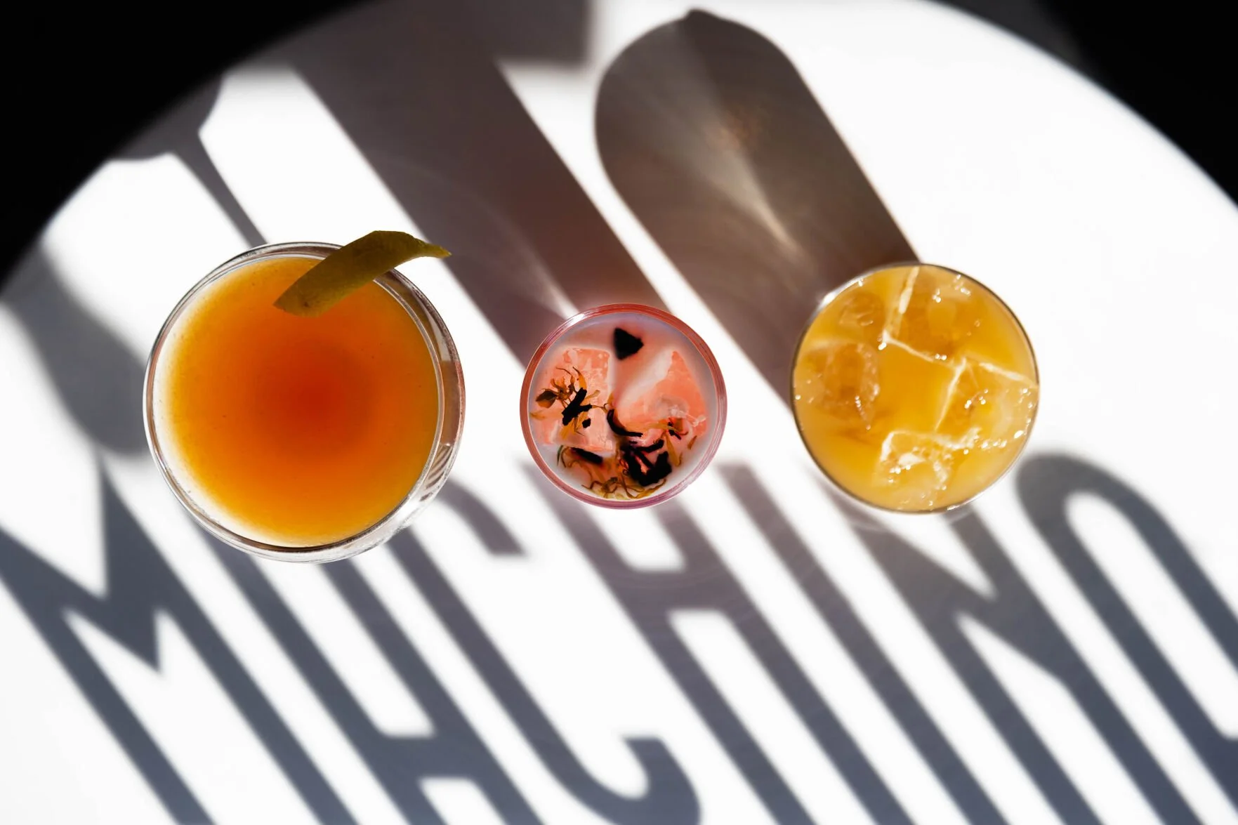 With the debut of its spring and summer menu, Machina Kitchen & ArtBar in Keene will offer a hibiscus calendula lemonade, a lemon verbena ginger fizz and a lavender chamomile sour (not pictured). On left, Machina’s non-alcoholic Manhattan is a current off-menu option — containing house-made non-alcoholic whiskey. By expanding its mocktail offerings, Machina hopes to be an inclusive and welcoming space in the community.